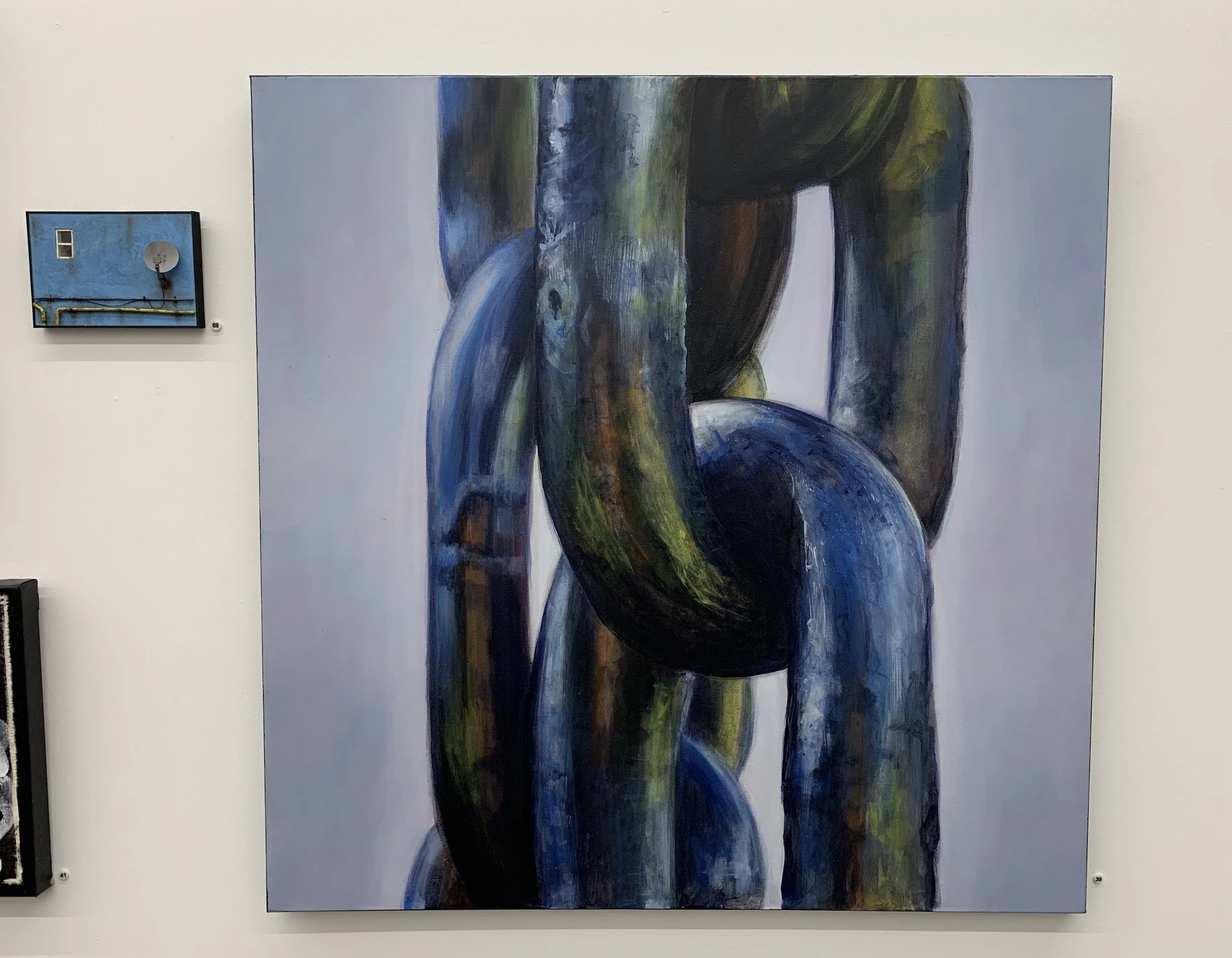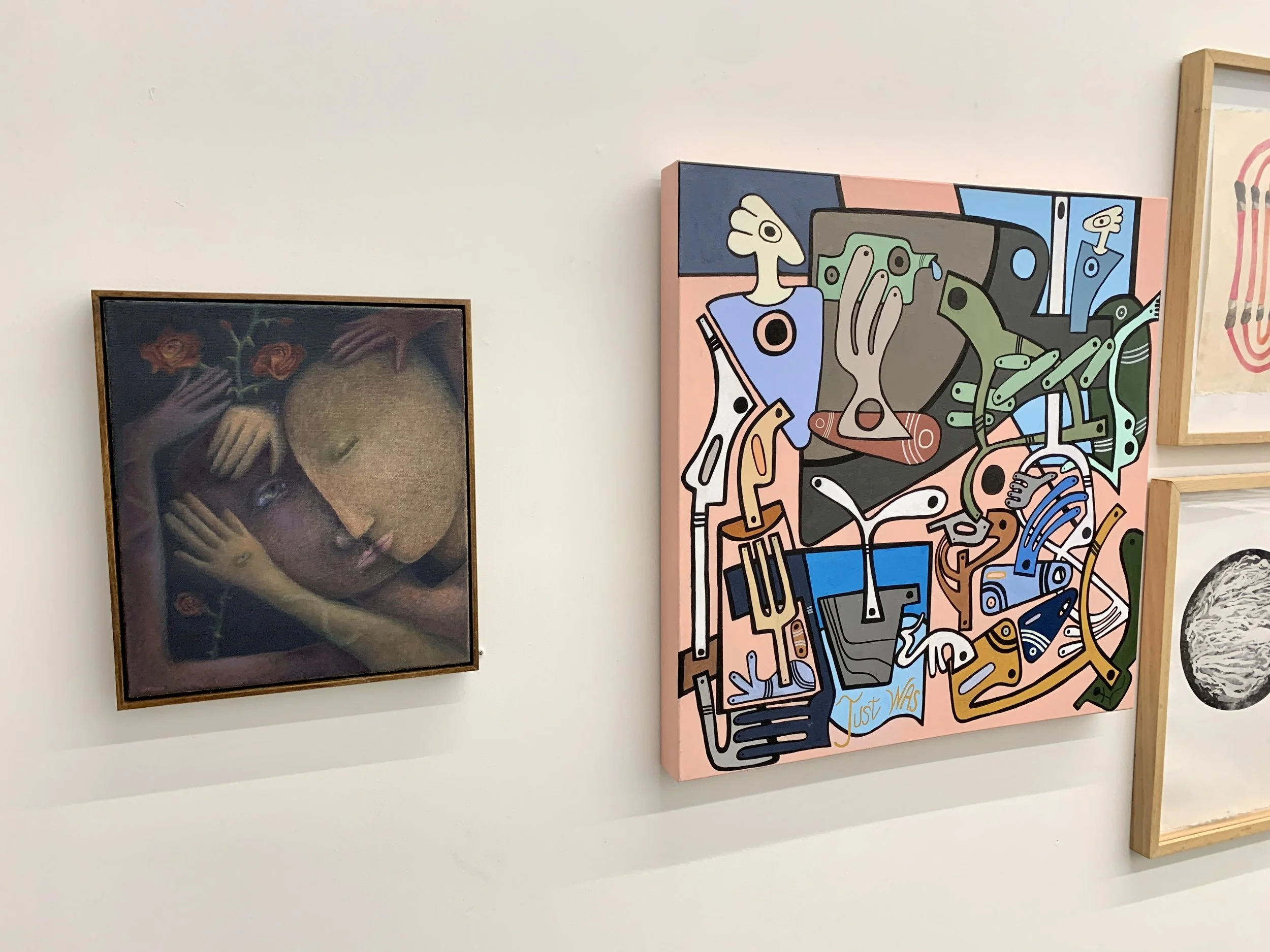 Works by Ryan Rado (left and bottom pieces), and Mason Peters (top right)