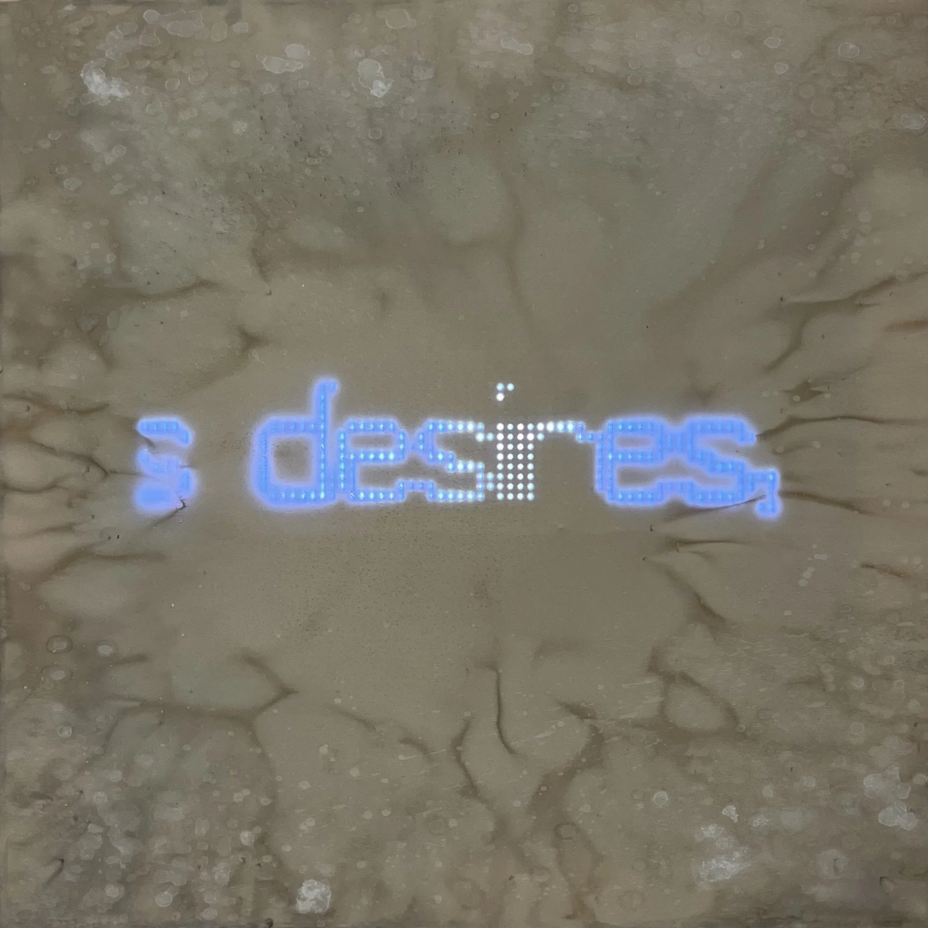 Acrylic on silk with coffee and salt, with LED electronics