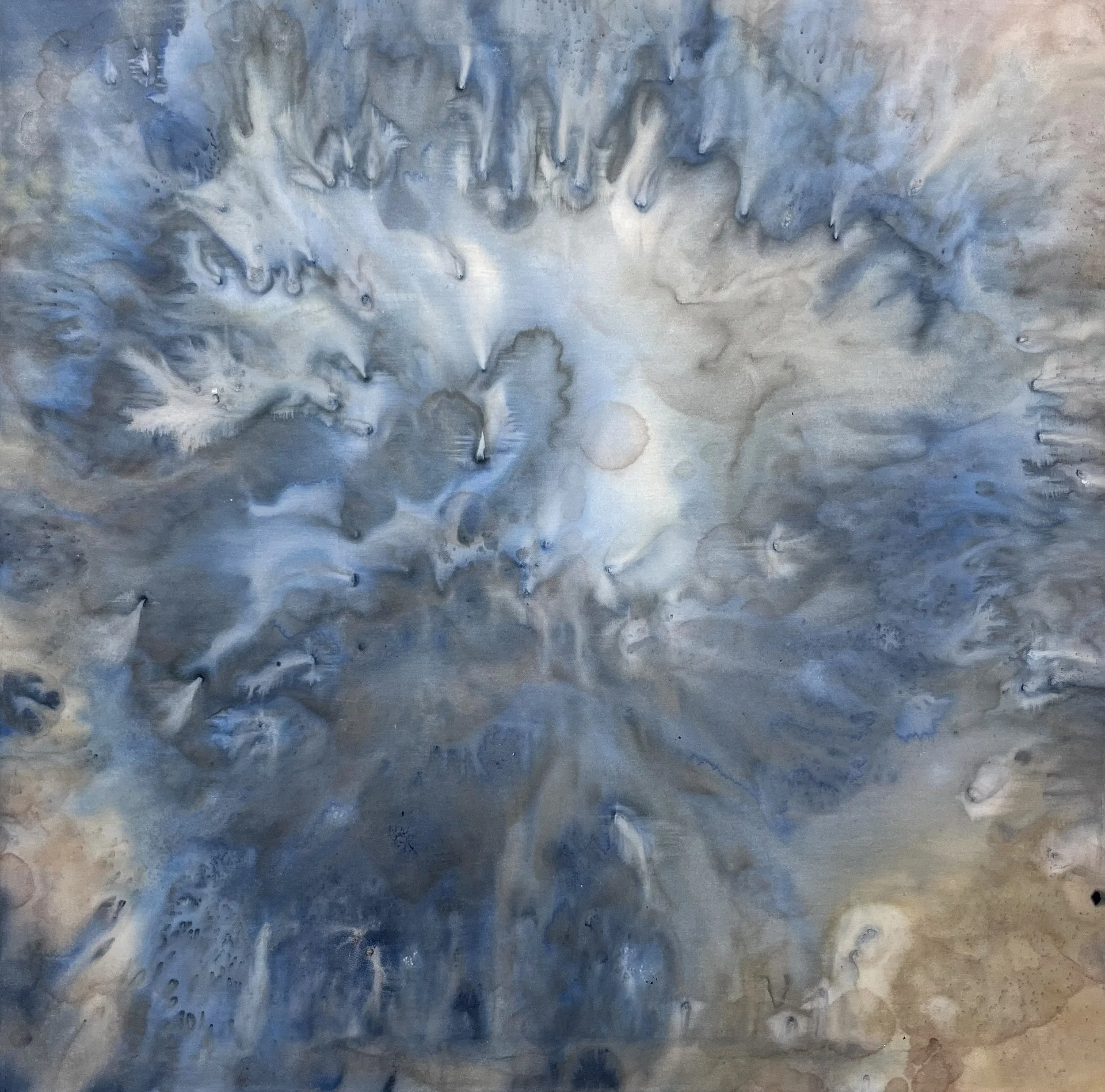 Acrylic on silk with coffee and salt